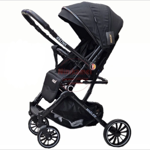 کالسکه مسافرتی مایلر مدل والتر قاب آلومینیومی سبک سیستم تاشو کم جا با دسته چمدانی قابلیت استفاده رو به مادر چرخشش ۳۶۰ درجه ای چرخ های جلو هر ۴ چرخ ترمز دار